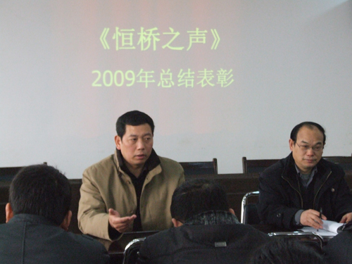 2009年12月18日,恒橋之聲2009年度表彰總結(jié)會(huì)在物貿(mào)會(huì)議室召開(kāi),會(huì)議由副總經(jīng)理原躍作主持,信息部馬利軍代表恒橋之聲編輯組對(duì)09年度恒橋之聲工作進(jìn)行總結(jié)。會(huì)上對(duì)個(gè)人和部門(mén)來(lái)稿前三名分別進(jìn)行了頒獎(jiǎng)。