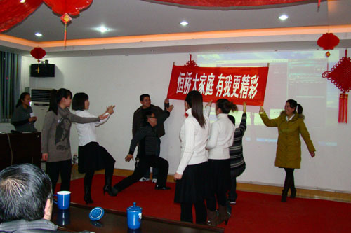 2009年12月30日下午4時。恒橋公司領(lǐng)導(dǎo)和全體員工以自己的方式來慶祝元旦的到來!所有的人都沉浸在一種快樂,喜悅,開心的氣氛中!晚會結(jié)束后,領(lǐng)導(dǎo)和全體員工在凱萊大酒店一起共進(jìn)晚餐,祝賀元旦聯(lián)歡晚會的圓滿結(jié)束和新的一年的到來。