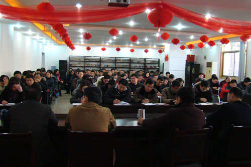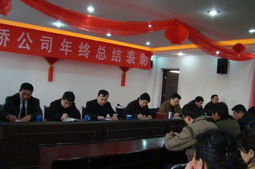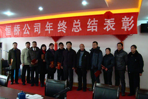 2009年12月30日下午4時(shí),公司召開年終總結(jié)表彰大會,董事長陳成順向大家通報(bào)了2009年公司領(lǐng)導(dǎo)班子的述職情況,常務(wù)副總經(jīng)理李建軍對2009年經(jīng)營工作做了總結(jié),監(jiān)事會主席姬忠勝宣讀了公司對王勇、董曉春等11名**員的決定,并宣讀了《2010年公司機(jī)構(gòu)設(shè)置、中層競聘的條件和方法》的文件。會上,董事長陳成順還向**員工頒發(fā)了證書和獎金。