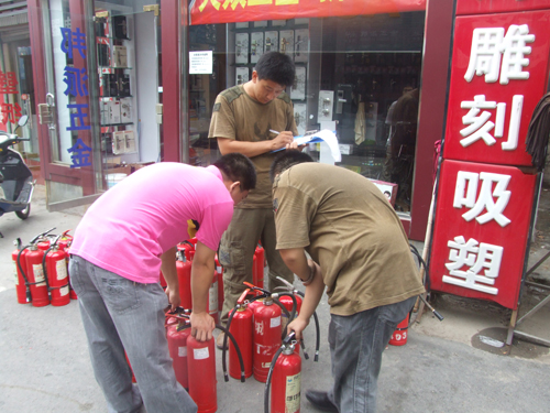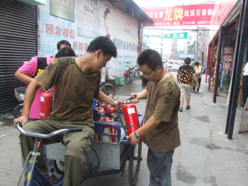 8月19日上午,物資城的工作人員冒著炎熱的天氣,協(xié)助物資城商戶進(jìn)行消防器材的年度審驗(yàn)工作,并將檢驗(yàn)合格的消防器材分別返還到商戶手中。