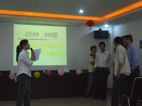 聯(lián)歡會在歡快的樂曲聲中拉開了帷幕,首先由綜合部宋宏經(jīng)理致辭,向大家致以節(jié)日的問候,接著伴隨著湯艷芬的《蘇州河》這首歌曲,聯(lián)歡會正式開始?!拔艺f你猜、搶話筒、猜謎”等小游戲貫穿于聯(lián)歡會中間,將現(xiàn)場氣氛一次次推向高潮。掌聲、笑聲、歡呼聲此起彼伏,處處洋溢著濃濃的節(jié)日氣氛,伴隨著《明月幾時有》優(yōu)美的旋律,聯(lián)歡會接近了尾聲,大家起身相互祝愿,相約明年再相聚。