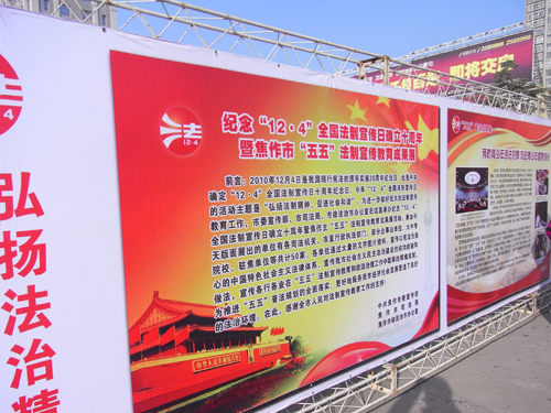 2010年12月4日,紀(jì)念“12.4”全國(guó)法制宣傳日確立10周年活動(dòng)在東方紅廣場(chǎng)舉行,舊車(chē)經(jīng)營(yíng)部積極響應(yīng),大力弘揚(yáng)法治精神,促進(jìn)社會(huì)和諧。
