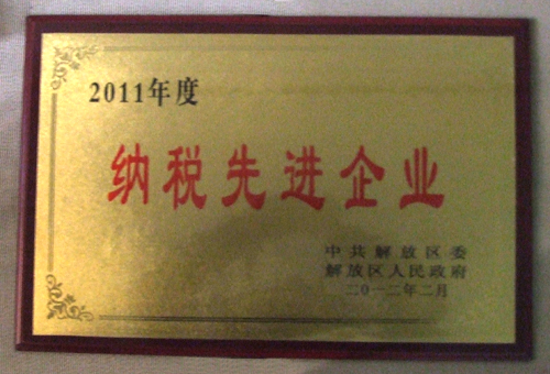 恒橋公司被中共解放區(qū)委解放區(qū)人民政府授予2011年度納稅先進企業(yè)稱號