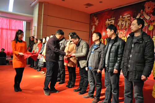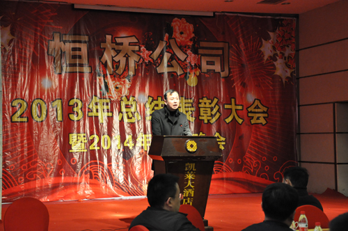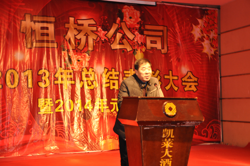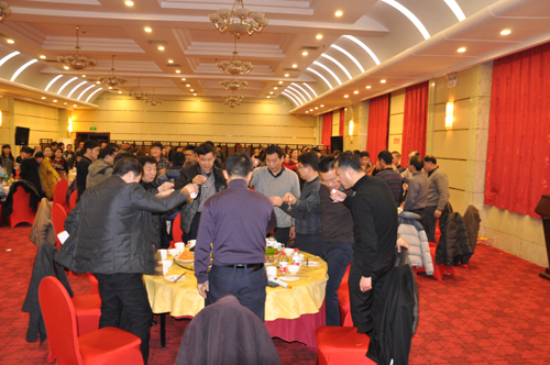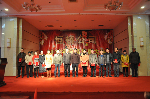 2013年12月27日下午,公司在凱萊酒店召開年終總結表彰大會,公司總經(jīng)理李建軍對2013年工作進行**總結,董事長陳成順對“什么是幸?!薄ⅰ叭绾巫非笮腋!钡葍?nèi)容做重要講話,監(jiān)事會主席姬中勝宣讀了公司對薛衛(wèi)東、宋宏等**員工的表彰決定,并為**員工分別頒發(fā)了證書和獎金。會議結束后,公司領導同廣大員工把酒言歡共賀新年。